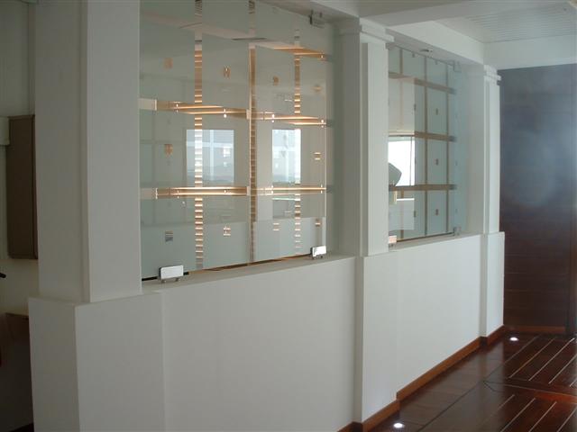 Des parois de verre permettent d'intimiser l'espace. Les verres avec motifs dépolis assurent une élégance sans pareil et une lumière naturelle maximale !