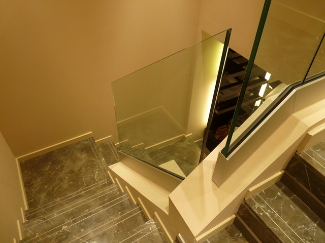 MARIA Aluminium & Acier a mis en oeuvre son savoir faire dans une volonté de discrétion et d'intégration par la réalisation des menuiseries extérieures cintrées et de l'ensemble des garde-corps en verre ; s'intégrant ainsi aux lieux classés ; mais par la mise en oeuvre de moyens quant à eux bien contemporains.