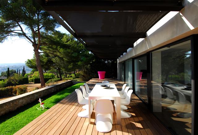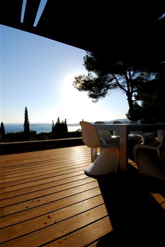 La réalisation de cette réhabilitation de la partie inférieure d'une villa flanquée sur les hauteurs de SANARY SUR MER dominant la baie est une prouesse que l'on doit à l'architecte Mr Thierry LOMBARDI.