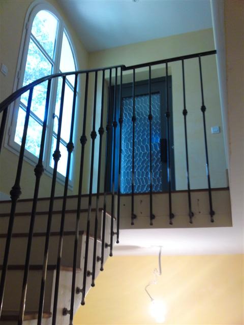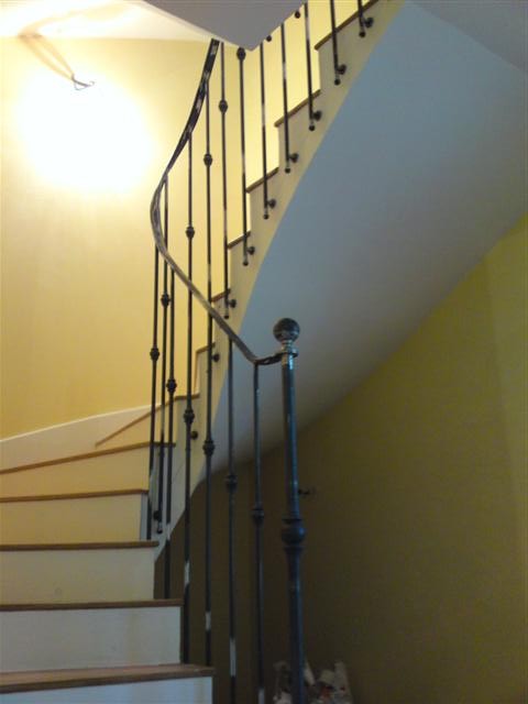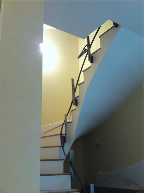 Dans le cadre de cette réalisation, la difficulté réside tant sur la volée très serrée de cet escalier balancé que sur le mode opératoire de pose. En effet, chaque barreau a été scellé un par un sur le limon déjà achevé.